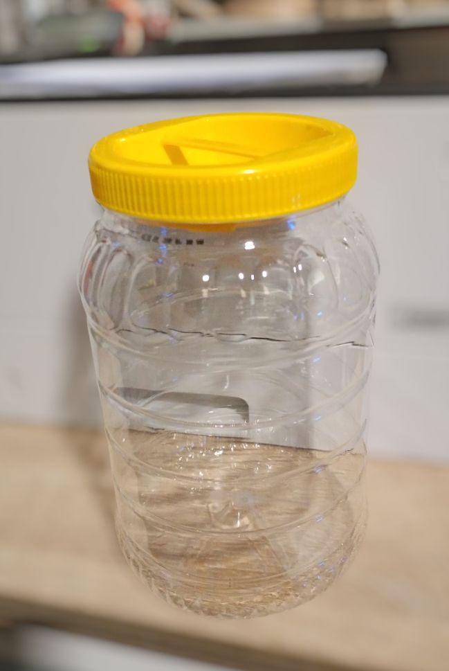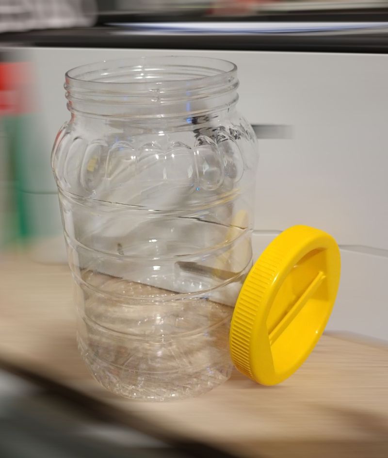Здрав и удобен пластмасов буркан, изработен от висококачествен ПВЦ материал, подходящ за съхранение на хранителни продукти, подправки, ядки, брашно, захар и други насипни стоки.