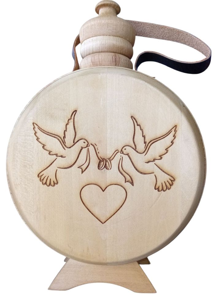 Метална бъклица 500 мл с байц и елегантна декорация с гълъби – символ на любов и вярност.
