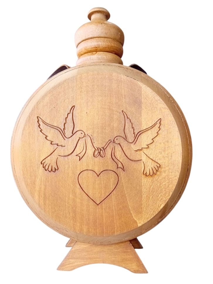 Метална бъклица 500 мл с лаково покритие и декоративни гълъби – символ на любов и вярност.