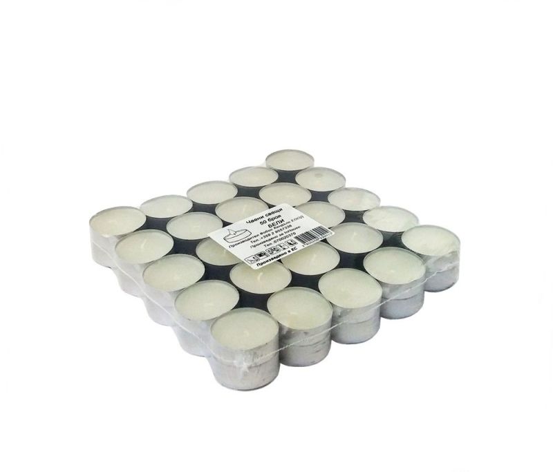 Комплект бели чаени свещи с време на горене до 4 часа.