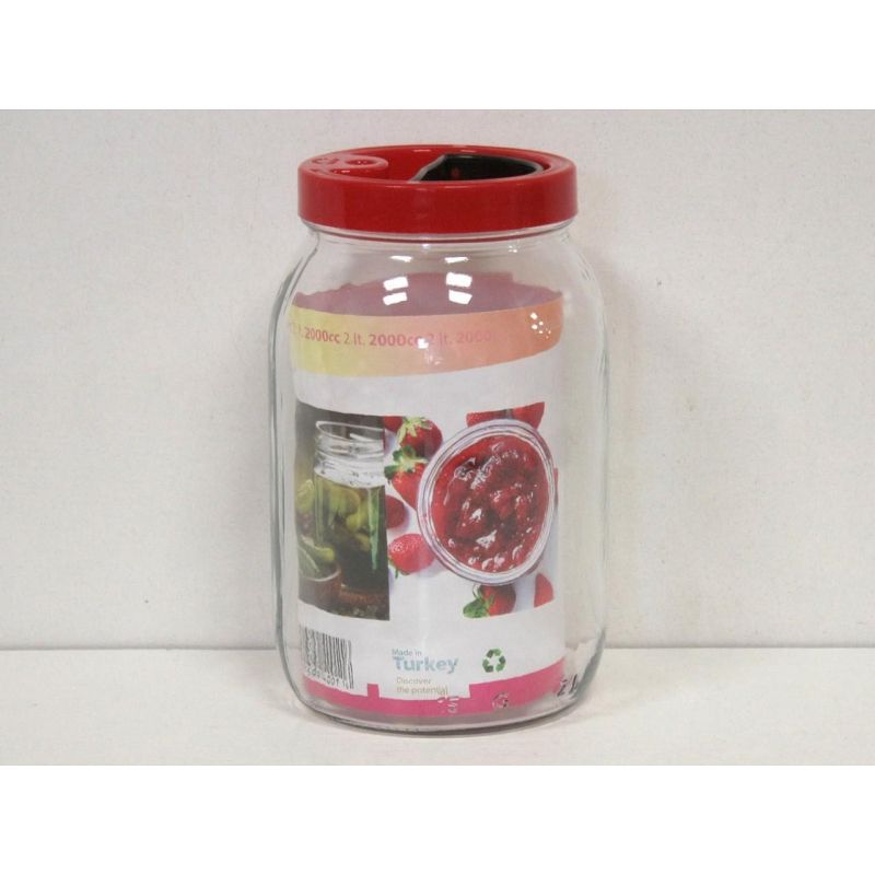 Компактен и удобен стъклен буркан с дръжка, подходящ за съхранение и сервиране на напитки, компоти, туршии или други домашни продукти.
