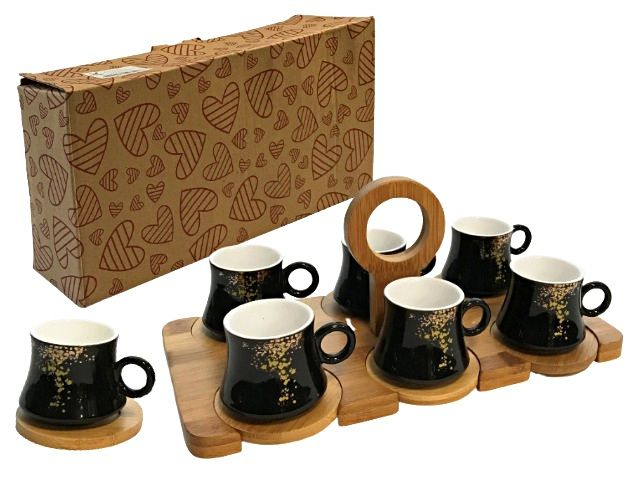 Сервиз за кафе 12 части с вместимост 90 мл на дървена поставка.
