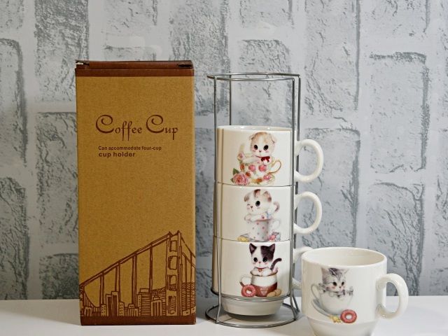 Комплект от 4 чаши с дръжка на стилна стойка с дизайн „Котета“.