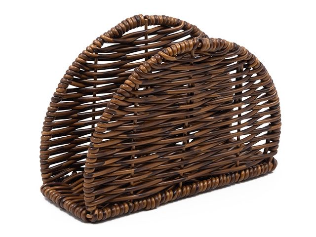 Овален салфетник в кафяв цвят с размери 15/10/4.5 см – стилен и практичен аксесоар за подредба на салфетки на масата или в кухнята.