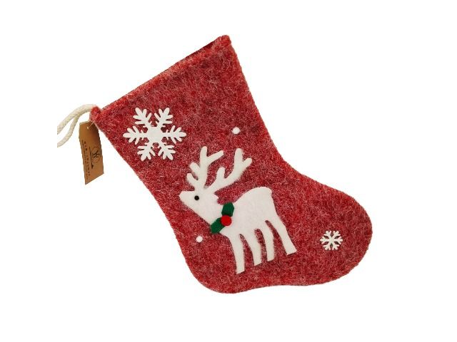 Коледна декорация чорап с елен в червен цвят, размери 34.5/23 см – празничен аксесоар за украса на дома, елха или камина.