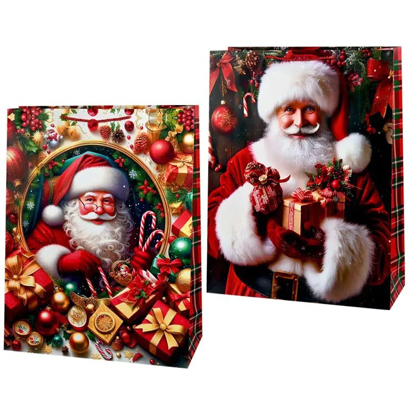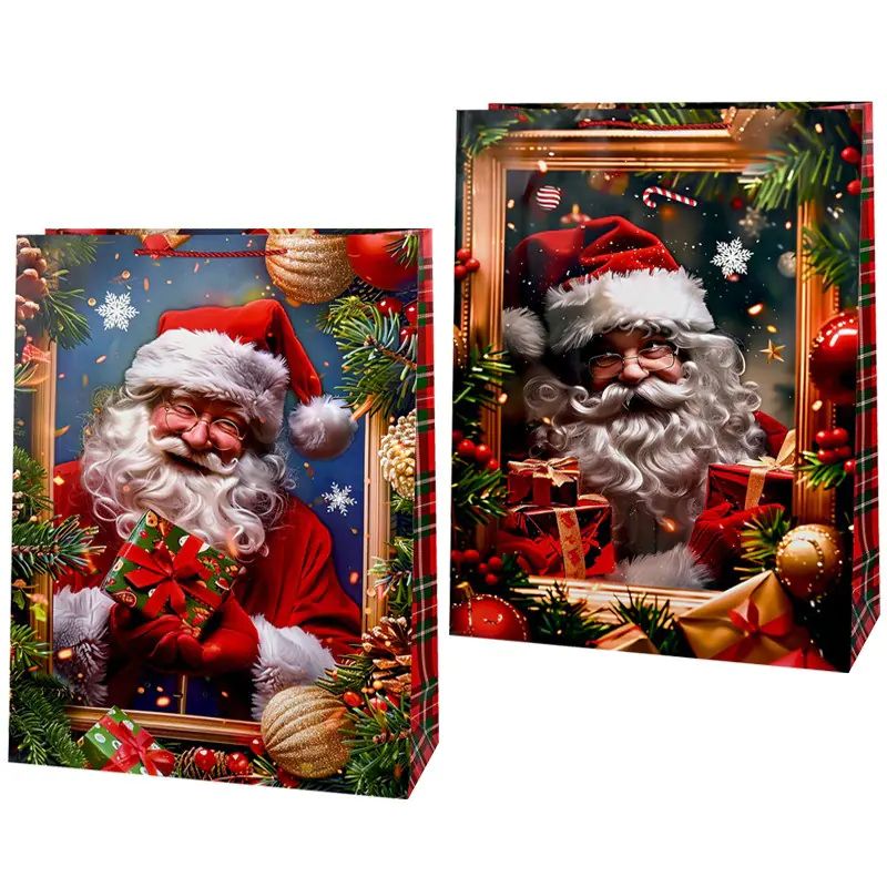 Здрав материал, ярък празничен дизайн и удобни дръжки за лесно носене – перфектният избор за стилна и ефектна коледна опаковка.