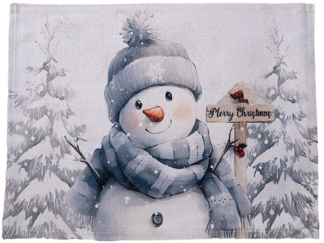 Коледна подложка за сервиране 28×43 см с весел снежко – перфектен акцент за празничната трапеза.