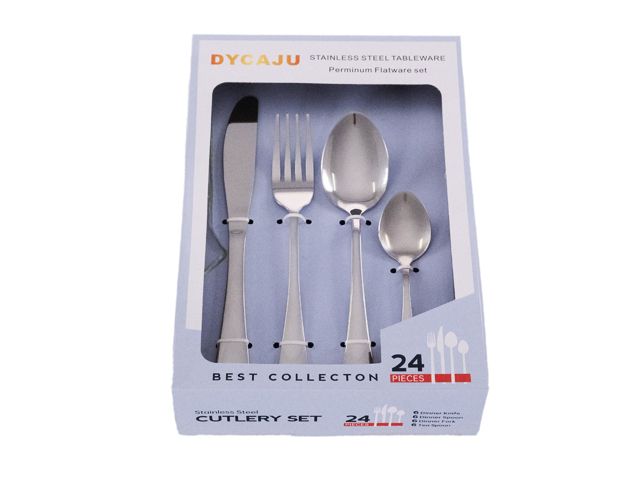 Елегантен комплект прибори за хранене от 24 части, подходящ за ежедневна употреба и официални поводи.