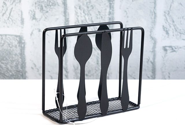 Стилен салфетник с декор „Прибори“ в черен цвят – практичен аксесоар за дома и трапезата.