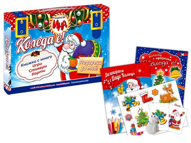 Комплектът включва куфарче с коледни книжки, карти и стикери – перфектен подарък за малки и големи.