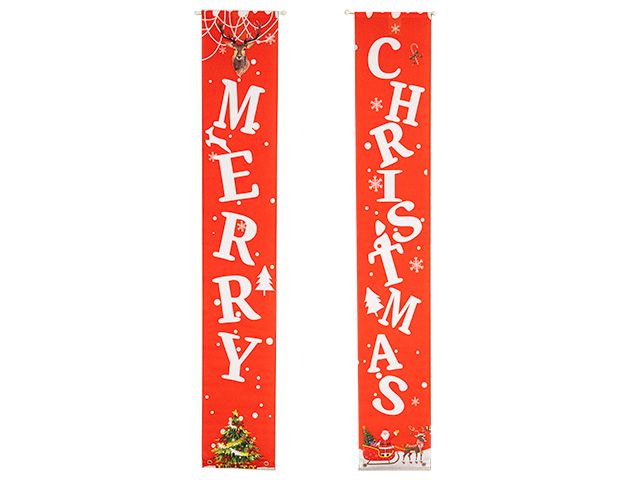 Празничен коледен транспарант в комплект от 2 броя, подходящ за декорация на входове, стени, витрини и партита.