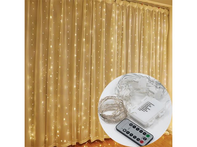 Коледни LED лампи 3x1 м с жълта светлина – идеални за празнична украса на дома, градината или прозорци.