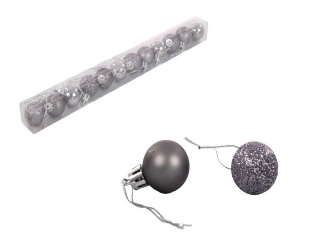 КОЛЕДНИ ИГРАЧКИ ЗА ЕЛХА ТОПКИ Ф3СМ. 12БР. В ТУБУС СИВО