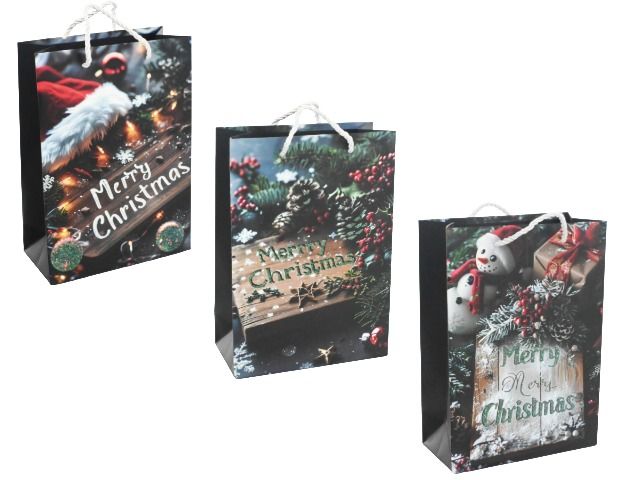 КОЛЕДНА ПОДАРЪЧНА ТОРБИЧКА 24/17/8СМ. MERRY CHRISTMAS