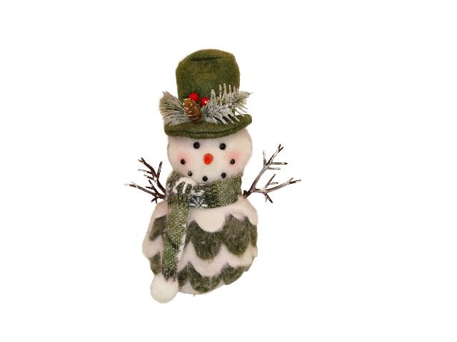 КОЛЕДНА ФИГУРА СНЕЖКО 26/13/9СМ. БЯЛО/ЗЕЛЕНО