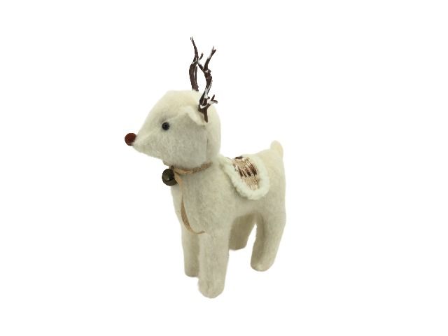 Коледна фигура пухкав елен 40/27/11 см в бяло – стилен и очарователен декоративен аксесоар за дома, офиса или магазин.