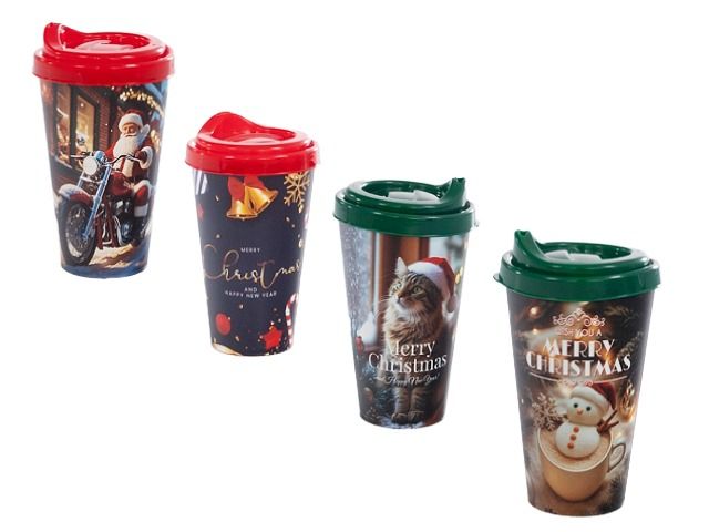 Чаша за кафе с капак и коледен декор 0.400 л – практичен и стилен аксесоар за топли напитки през празничния сезон.