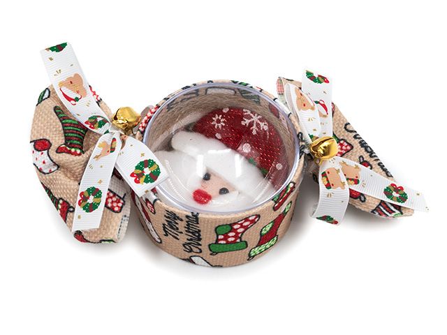 Коледна кутия за бонбони с диаметър 7 см в елегантен бежов цвят.