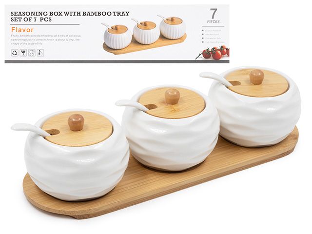 Комплект буркани за подправки с поставка – 7 части, съчетаващ практичност и стил в кухнята.